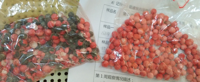 五周 | 有90%粒開裂,未開裂約30粒 | 未有開裂,有變色 |